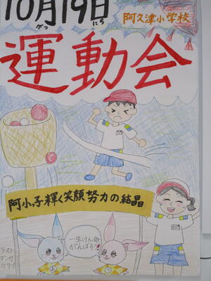 そのような中ですが、所々にイラスト・マンガクラブの皆さんが描いてくれた運動会のポスターが貼ってあります。