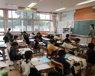 低学年ブロックの授業を見ていると、どのクラスも落ち着いて真剣に授業を受けていました。