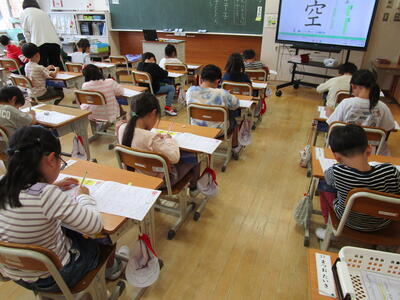 1年生のあるクラスを見てみると、漢字の勉強をしていました。