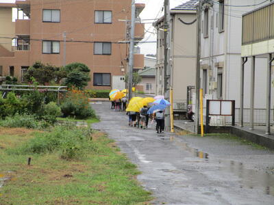 今日は、登校だけでなく下校も傘を差しての下校でした。視界が悪くなるので、特に安全に気を付けて下校してほしいと声を掛けました。