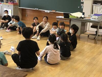 また、同じ頃、6ー3と1-3の児童がフレンドリータイムということで異学年交流を行っていました。2部屋に分かれて、6年生が考えたゲームを6年生がうまくリードしながら、1年生と楽しく遊んでいました。6年生の活躍が光っています。