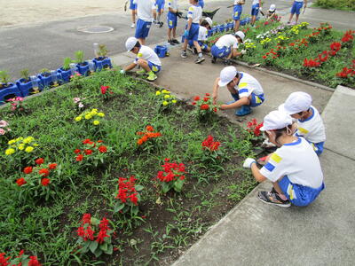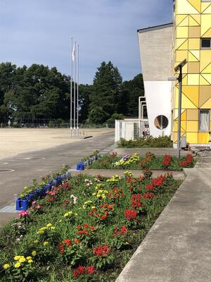 校舎前の花壇ですが、先週末にグリーンボランティア2名の方が、草取りをしてくれました。雨が降る中活動してくださったようです。草一本も生えていないくらいきれいにしてくださいました。お忙しい中、本校学校教育のために御協力を下さり誠にありがとうございます。