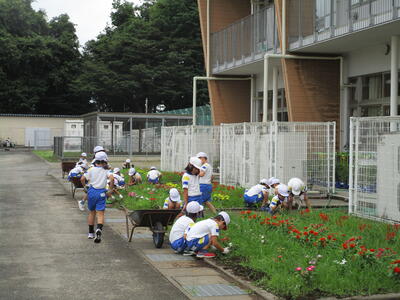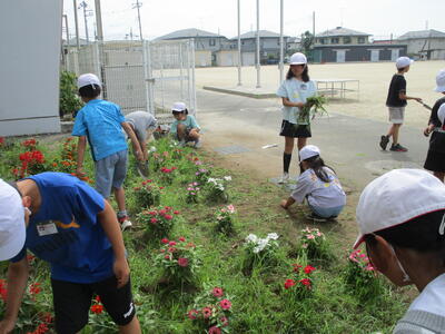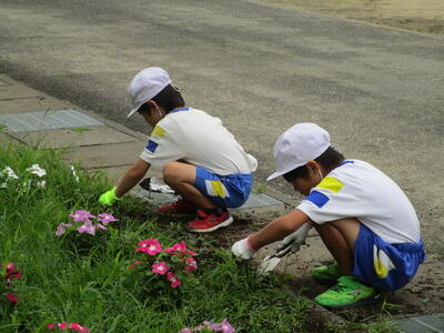 そのような中、校舎前の花壇をグリーンボランティアの皆さんが草取りの作業をしてくださいました。