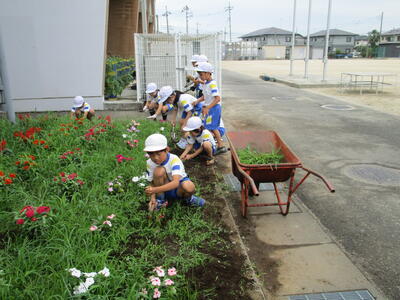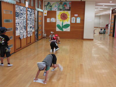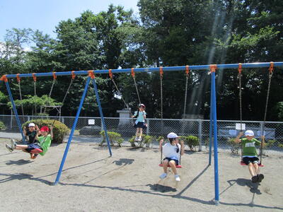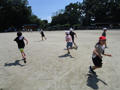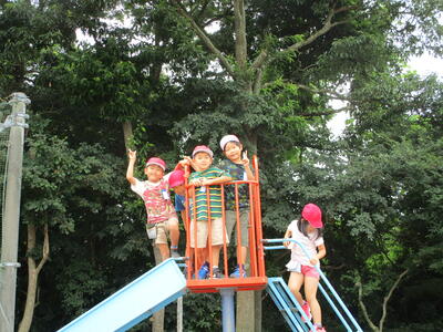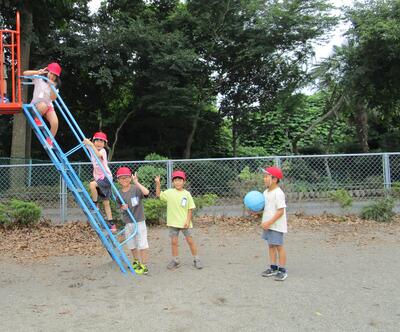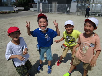 今日は、梅雨明けしたこともあり、蒸し暑い気候となりましたが、フリータイムは外で遊ぶことができました。子どもたちは夏休み前、最後の外遊びを楽しんでいました。