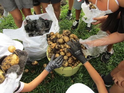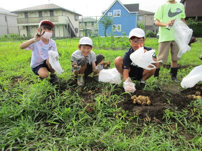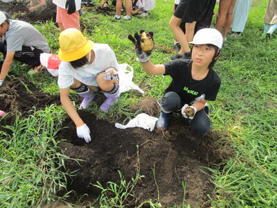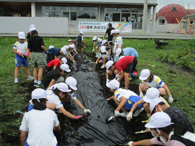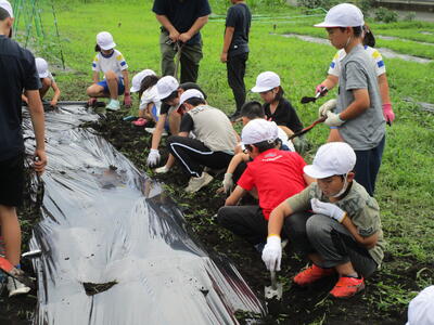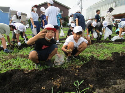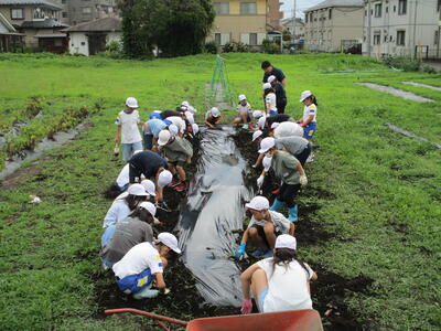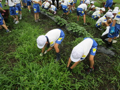学校農園では、2年生がサツマイモの栽培をしていますが、2年生のみなさんが手を真っ黒にしながらこちらも草取りをしてくれていました。
