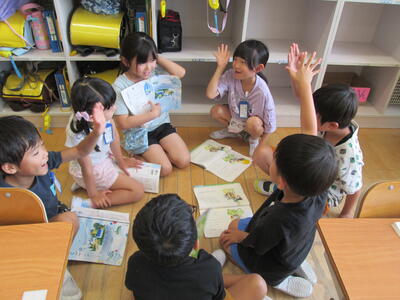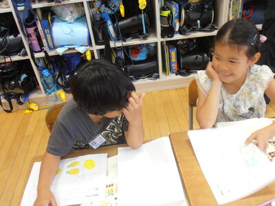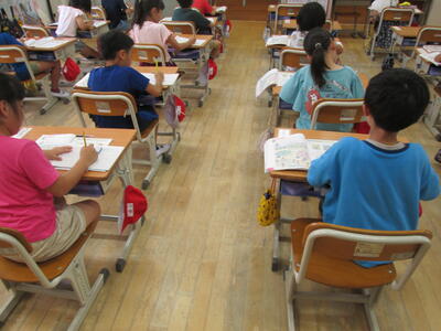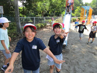 夏休み明け、まだ2日目ですが、子どもたちは授業に集中して取り組んでいます。午前とお昼のフリータイムでは夏休みなかなか会えなかった友達もいたのでしょう。楽しそうに外遊びを楽しんでいました。