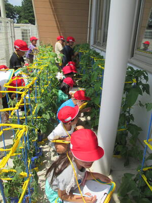学校農園に植えた野菜たちも、雑草にも夏の暑さにも負けず頑張って成長しています!
