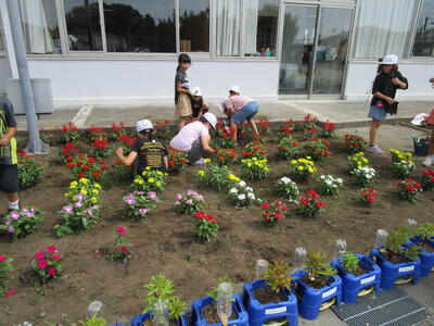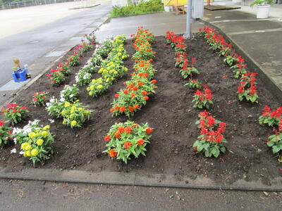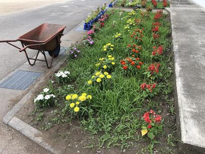 グリーンボランティアの皆様が草取りをしてくださり、きれいな花壇となりました!