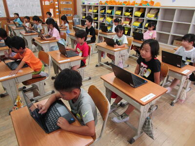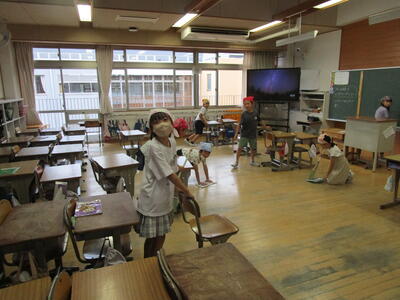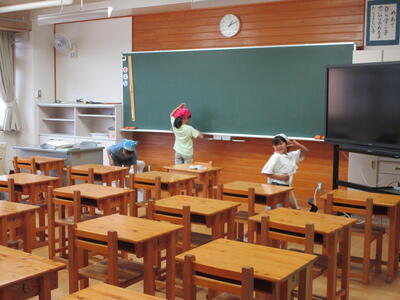 夏休みが明けて、発育測定も行われており、4月からほんの4か月くらいしかたっていませんが、身長や体重も大きく成長しているようです。保健室での測定が終わって教室に戻った6年生のクラスをのぞいてみると、楽しそうに手を振ってくれました⁉