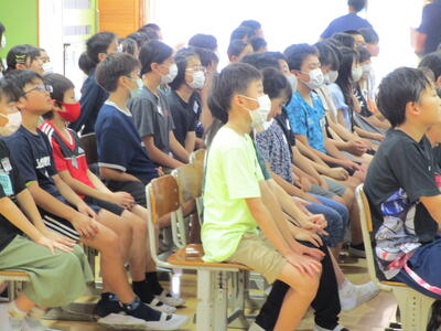 校長からは、これから10月11日(金)までの間は「1学期のまとめの時期」であること、また、夏休み中のパリオリンピックでの日本選手団の活躍を紹介し、結果より、「目標に向かって頑張っている自分を大切にしてほしい。そして、そういう自分を好きになってほしい」ことなどについて話をしました。