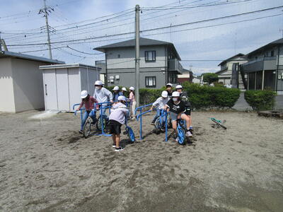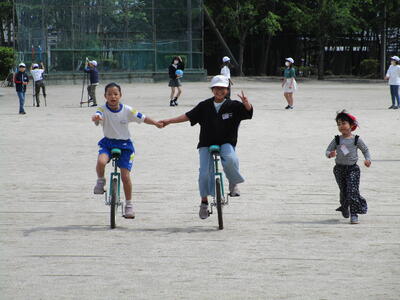 午後になると天気も回復し、昼のロングフリータイムは多くの児童が外遊びを楽しんでいました。校庭の東側には一輪車用の手すりがあるところがありますが、たくさんの子どもたちが一輪車の練習をしていました。一輪車はバランスをとるのが大変難しく、乗るのに苦労している児童が目立ちましたが、それでも、何回も何回もチャレンジしながら少しずつ「コツ」をつかんでいるようでした。上級生になるとうまく乗りこなすことができる児童もおり、校庭を楽しそうに一輪車で移動していました。