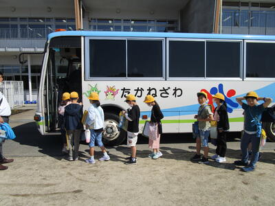 モビリティリゾートもてぎに向けて出発です。どの子も笑顔で出発しました。