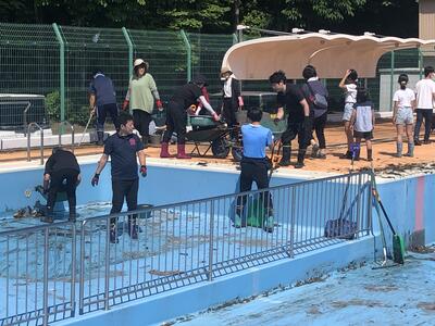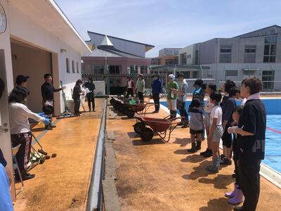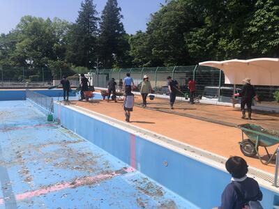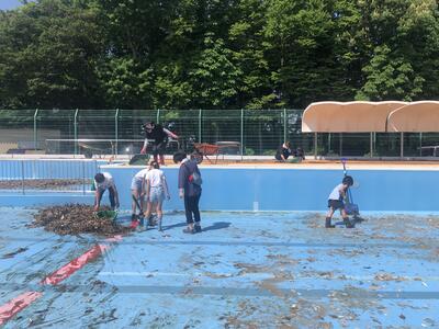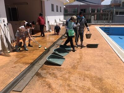 5月11日(土)9:00~、PTA事業部の皆様によるプール清掃を実施していただきました。