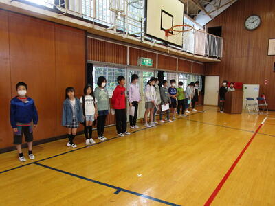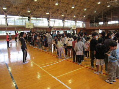 1年生から6年生まで全校生が体育館に一堂に会するのは、今年度初めてとなりました。
