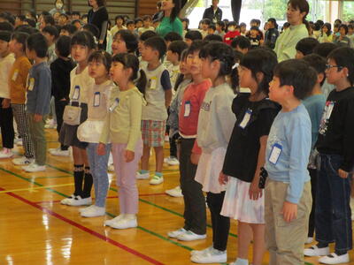 最後に全校生で校歌を歌いましたが、どの学年も大きな声でとても立派な歌でした。特に、1年生が、校歌をよく覚えており、大きな声で歌っていたのが印象的でした。