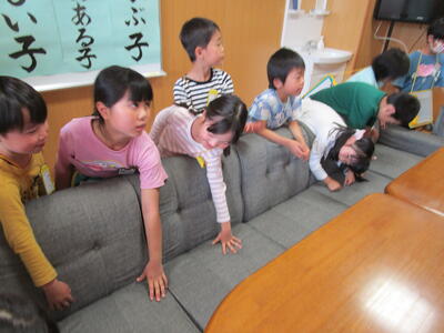 校長室では大きな金庫にびっくりしたり、歴代の校長先生の写真を興味深そうに眺めていたりしました。また、ふかふかのソファーを興味深そうに手で触っている姿も見られました。