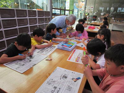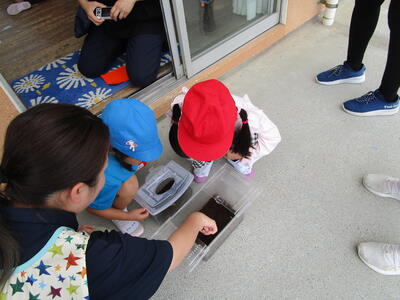 ブロックや、粘土、おりがみ、積み木、ぬり絵、紙ひこうきなど、子どもたちの遊びは多種多様で、それぞれの興味や関心に基づいて様々な遊びをしていました。また、大切にしている羽化したばかりのカブトムシを見せてくれた子もいました。