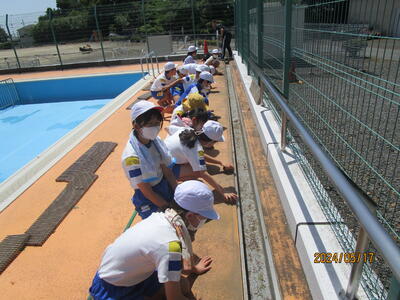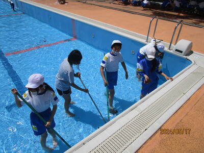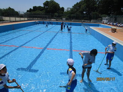 今後は、6年生によるプール清掃を行い、安全・安心で清潔なプールで水泳授業を行っていきたいと考えています。