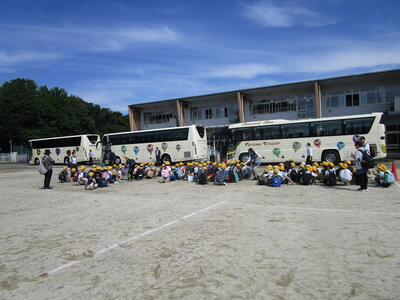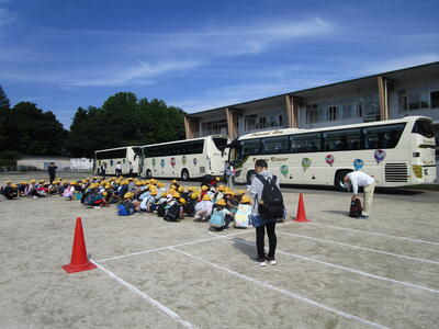 1年生はなかがわ水遊園に、2年生はモビリティリゾートもてぎに向けて出発です。どの子も笑顔で出発しました。