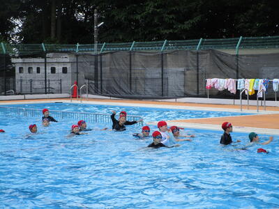 今日も、プールは大賑わいです。水泳学習も今日は気温が上がっているのでとても気持ちよさそうです。プールから上がった子どもたちと体育館通路ですれ違いましたが、よほどプールが楽しかったのでしょう!とびきりの笑顔でピースをしてくれました。