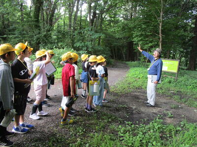 目的地に着くと、2年生が1年生に向かってそれぞれの場所の説明をしていました。上級生としてきちんと1年生をリードする姿は大変立派です。