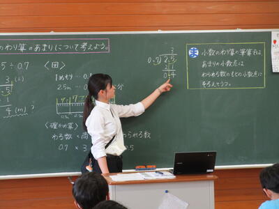 3年生の教室を歩いてみると、各教室とも「わり算」の勉強でした。