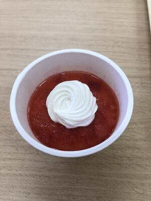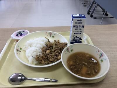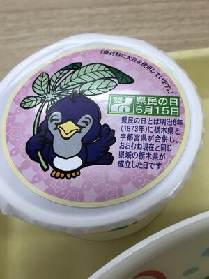 メニューはとちぎめし(ごはん・とちぎめしの具)、なめこ汁、牛乳、県民の日ゼリー(いちごゼリ-)です。大変おいしかったです。
