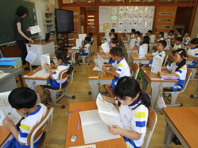 どの児童も、姿勢正しく真剣に授業に取り組んでいました。