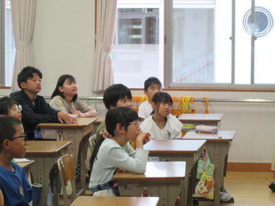 子どもたちは、身を乗り出すように、真剣に、また楽しそうに聞いていました。