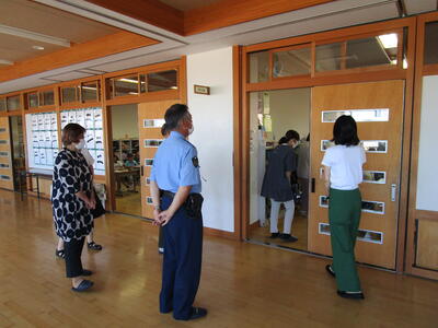 多目的ルームで全員が集まったあと、グループごとに校内を探検しました。
