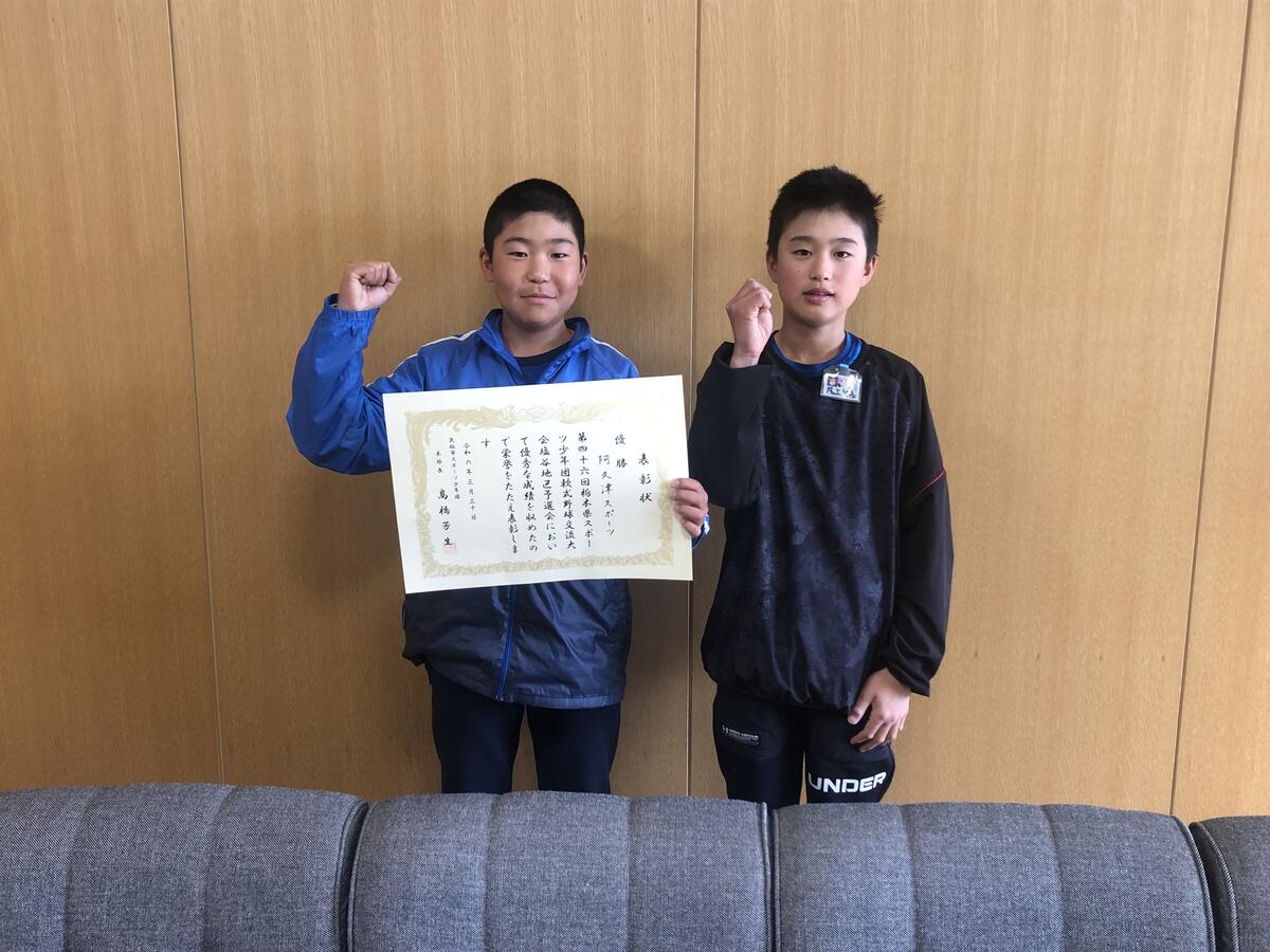 この度、チームを代表して6年生のメンバー2人が校長室を訪れて入賞の報告をしてくれました。