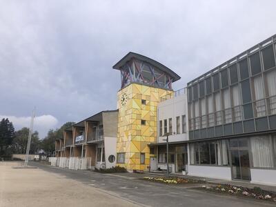 スライド資料では、それぞれの時代の写真など示しながら、現在の地に移ったときの様子、創立100周年記念の式典の様子、1981年(昭和56年)に完成した鉄筋コンクリート3階建ての校舎の様子などを紹介しました。また、その後は児童数が900名を越え、それに伴って西小学校が新設されたこと、2002年(平成14年)には、当時の天皇陛下、皇后陛下が阿久津小学校を御訪問になったこと、そして忘れてはならない、2011年(平成23年)の東日本大震災では校舎が大きく損壊し、2年あまりにわたって西小を間借りしての授業や仮設プレハブ校舎での授業など、苦労の中でも阿久津小学校の先輩たちはたくましく学校生活を送り、2014年(平成26年)に今の新校舎が完成したことなどを説明しました。