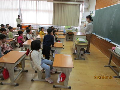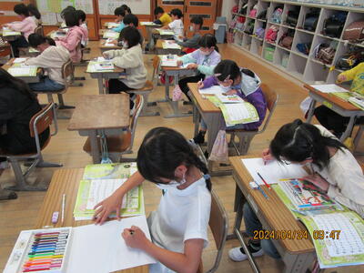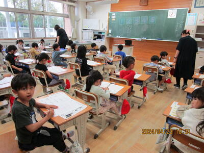 2年生は国語や学活を行っていました。国語では新しく出てくる漢字を勉強していましたが、難しい漢字も頑張って覚えていました。