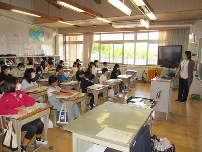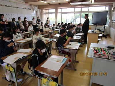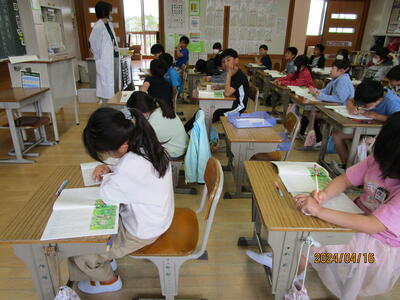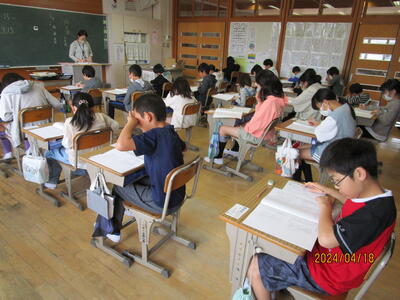 今年度は、昨年度までの「あいさつ」に加え、「返事」や「良い姿勢」についても意識を高めるようにしています。5・6学年ブロックのフロアを歩いてみると、どのクラスも真剣に授業に取り組んでいました。さすが上級生です。