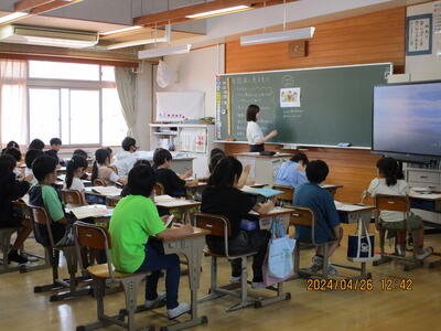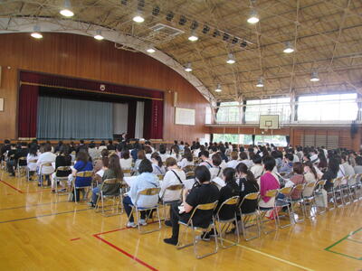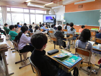 授業参観後は、PTA全体会を行いました。コロナの影響もあり、年度初めにPTA全体会を行うのは5年ぶりとなるかと思います。PTA会長の話、学校長の話のあと、新旧役員あいさつ、職員紹介などを行いました。