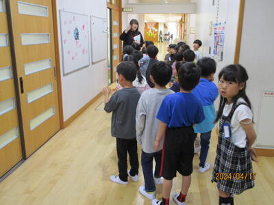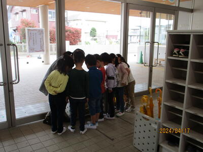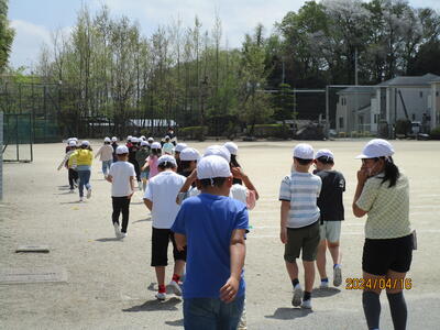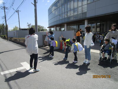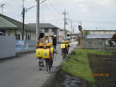 1年生は、今日で4回目の下校となります。お迎えの保護者の皆様の御協力のおかげで、道路の右側を1列で、安全に気を付けて下校しています。もうしばらく、御協力いただくことになるかと思いますが、子どもたちの安全のため、引き続きよろしくお願いいたします。