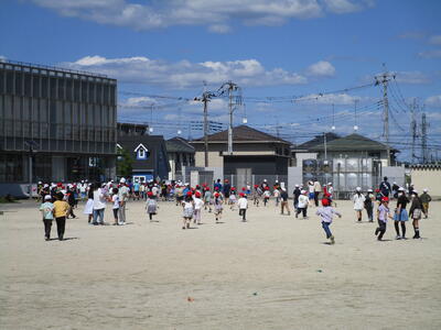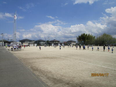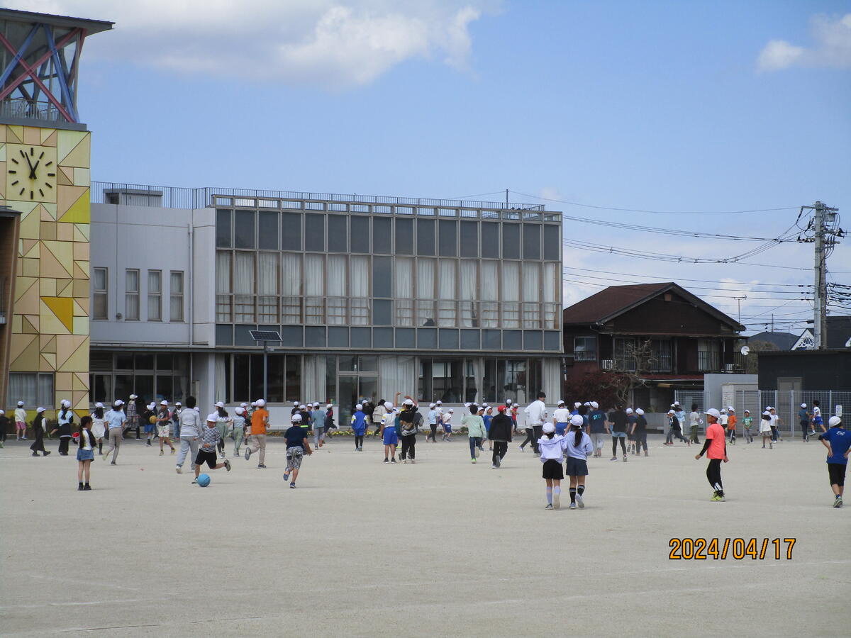 校庭に出てみるとたくさんの子どもたちが外遊びを楽しんでいました。
