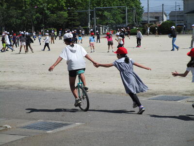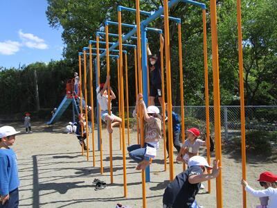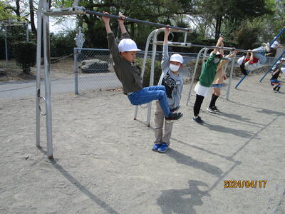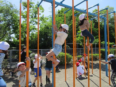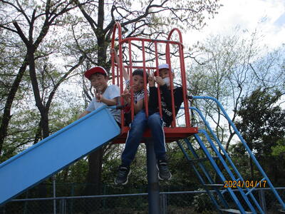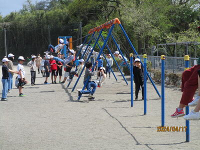 一輪車、竹馬、ドッヂボール、おにごっこ。のぼり棒、滑り台、ブランコなどそれぞれの興味関心に応じて遊ぶものは違います。新しいクラスでの友達もできつつあるようです。