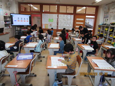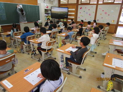 3年生はクラス替えをしたばかりですが、徐々に新しいクラスにも慣れてきたようです。算数や、音楽、外国語活動などに積極的に取り組んでいました。