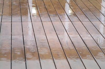 中庭のウッドデッキは雨に濡れて、シンボルツリーの緑も日ごとに濃くなってきています。