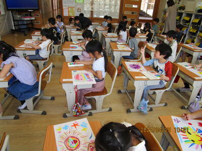 「わたしの おひさま」ということで、画用紙にクレヨンで大きくおひさまを描いていました。