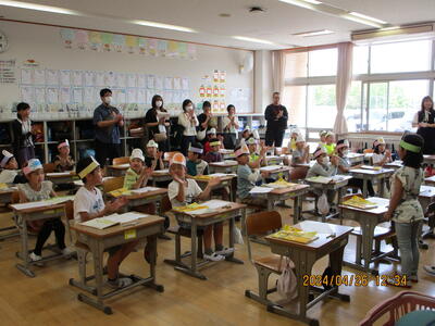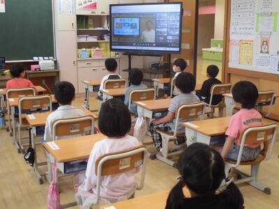 9時30分から始まった式では、6年生のお兄さん・お姉さんが対面式の式場で見守るなか、担任の先生の呼名に対して元気よく返事をすることができました。また、2~5年生は、各教室で担任とともにリモートで参列しました。