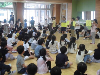 5月朝会(阿久津小学校の歴史を知ろう!)