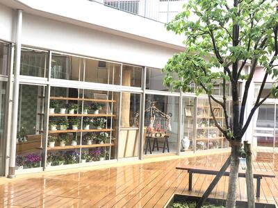ふと、なかよし広場(中庭)を見るとシンボルツリーのハナミズキがきれいな花を咲かせていました。