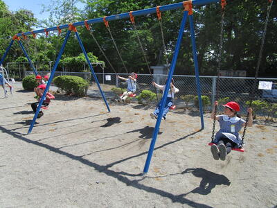初めての実施となった今日は、穏やかな晴天に恵まれ、たくさんの子どもたちが外遊びを楽しんでいました。