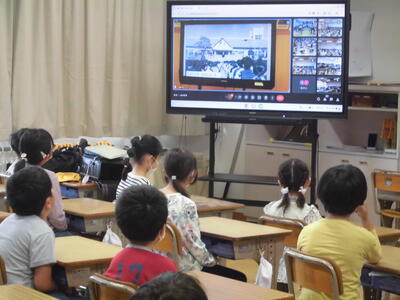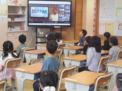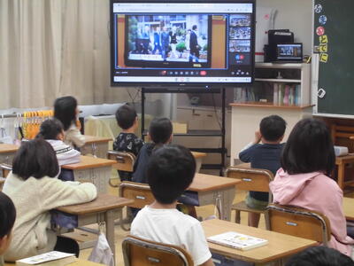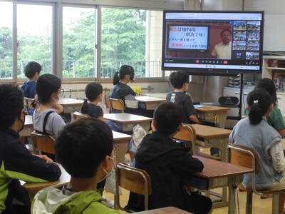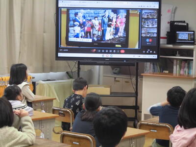 校長の話の後、転出された先生方から寄せられたビデオメッセージが大型モニターに流れると、子どもたちは懐かしそうに、また寂しそうに、真剣な表情でビデオを視聴していました。