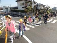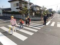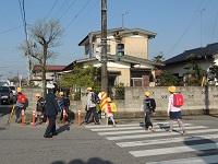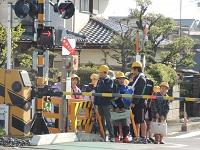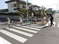 おはようございます。西町交差点、並塚踏切付近の登校の様子です。