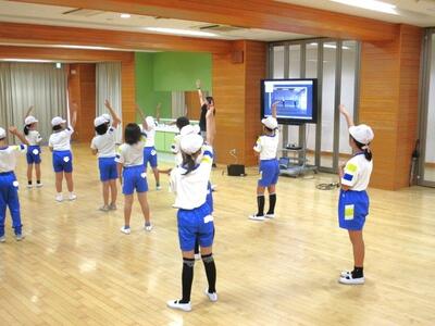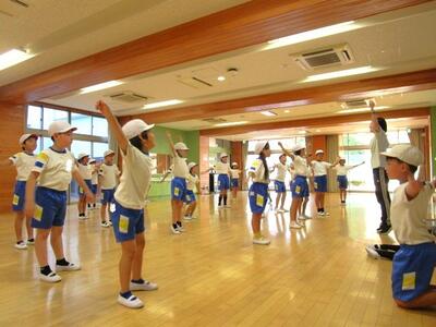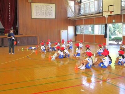 【1年生】1年生にとって初めての運動会。1枚目の写真は、動画を見ながら運動会のダンスを練習している様子です。これから少しずつ覚えていきます。