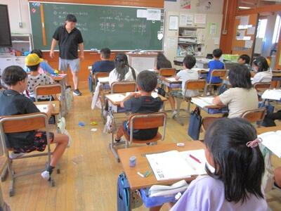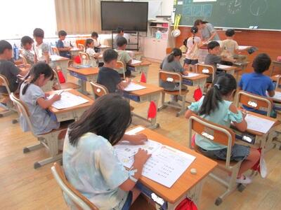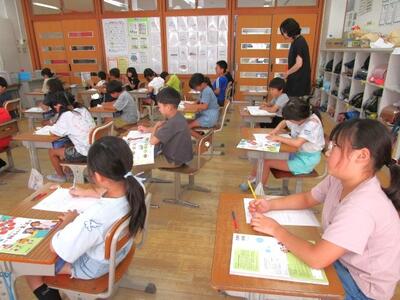 【3年生】1枚目の写真は、国語の書写の時間の様子です。3年生から始まった毛筆での習字も、学習後の習字道具の片付けもすっかり上手になりました。