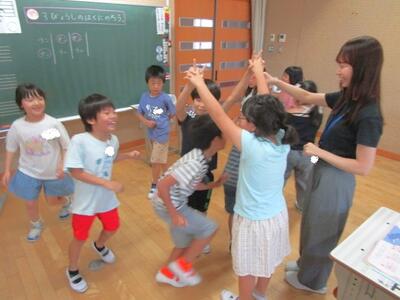 25日(木)の昼休み(フリータイム)に、全校児童が縦割りの班で活動する「フレンドリータイム」を実施しました。自分の班の教室に集まった子どもたちは、6年生の指示を聞きながら、いろいろな室内遊びを通して親睦を深めました。